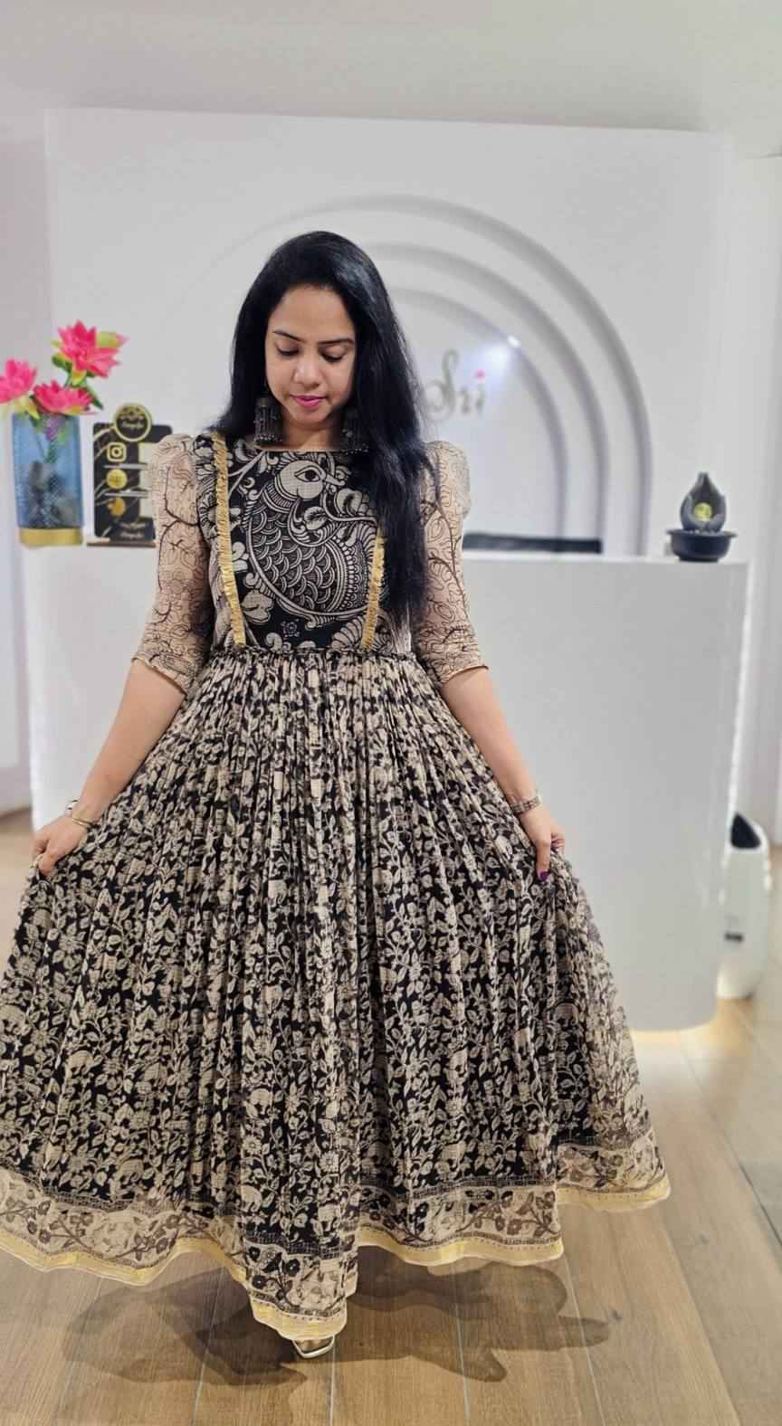 Introducing Our Newest Creation: A beautiful traditional kalamkari Printed Beautiful Maxi's these are made in Light Fabric! ❤️💫 Elevate Your Style With The Perfect Blend Of Elegance And Comfort. Make A Fashion Statement Like Never Before With This Enchanting Ensemble. Get Ready To Shine In Perfection! ✨💖
