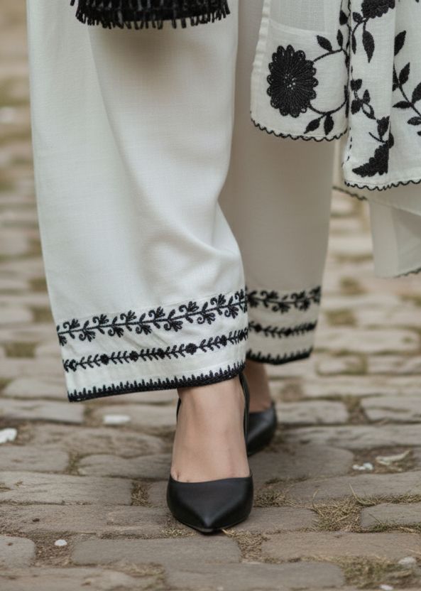 - Fabric: Pure Natural Crepe with Embroidery Work & Elastic Waist
